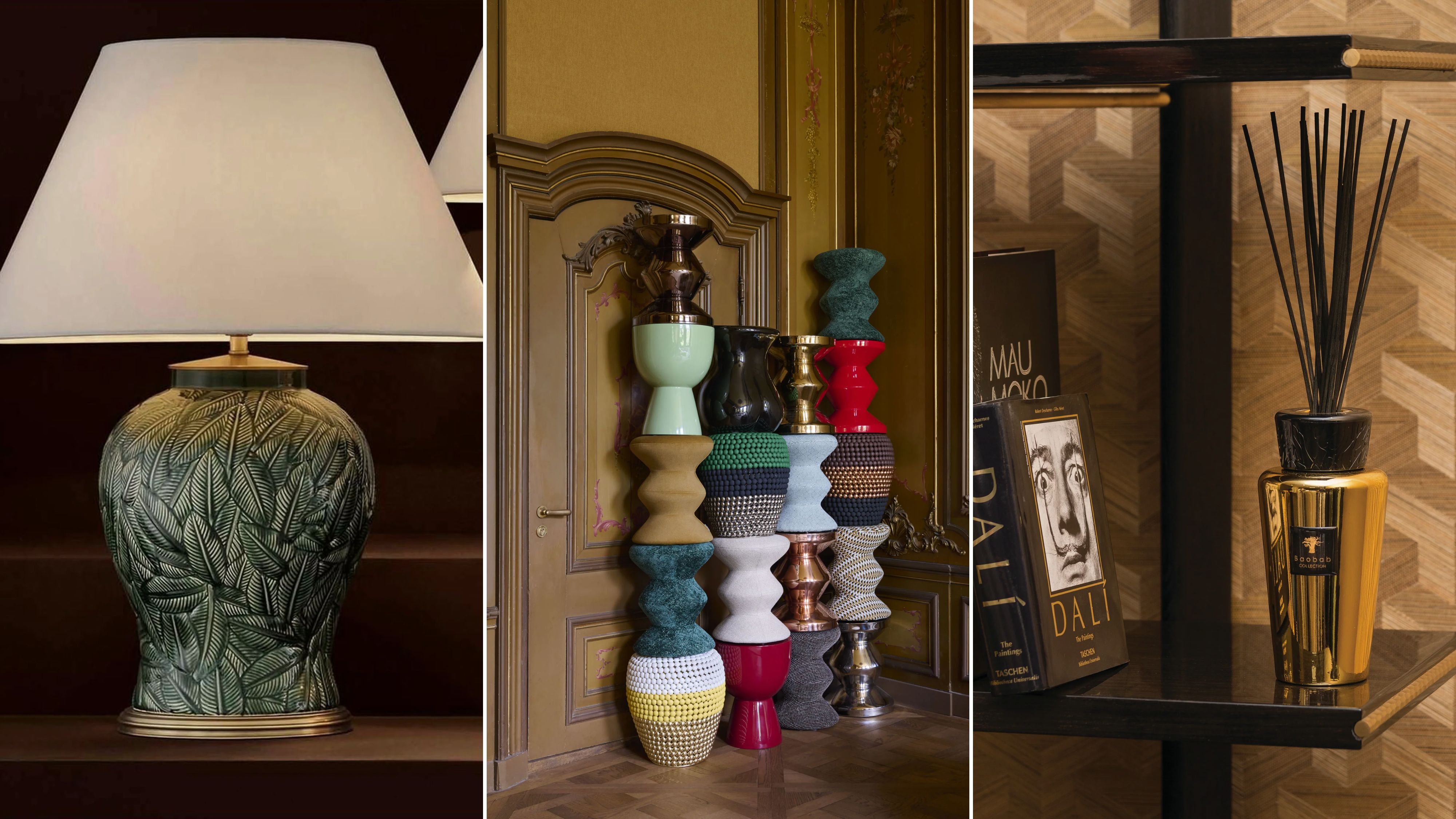 With bold colours, fine materials and expressive patterns, you bring the palace look into your home. The ceramic lamp CYPRUS adds atmospheric accents with its leaf pattern, while the stool DOT and the side table ZIGZAG serve as sculptural highlights. The EXCLUSIVES room fragrance with jasmine and musk provides the finishing touch.
