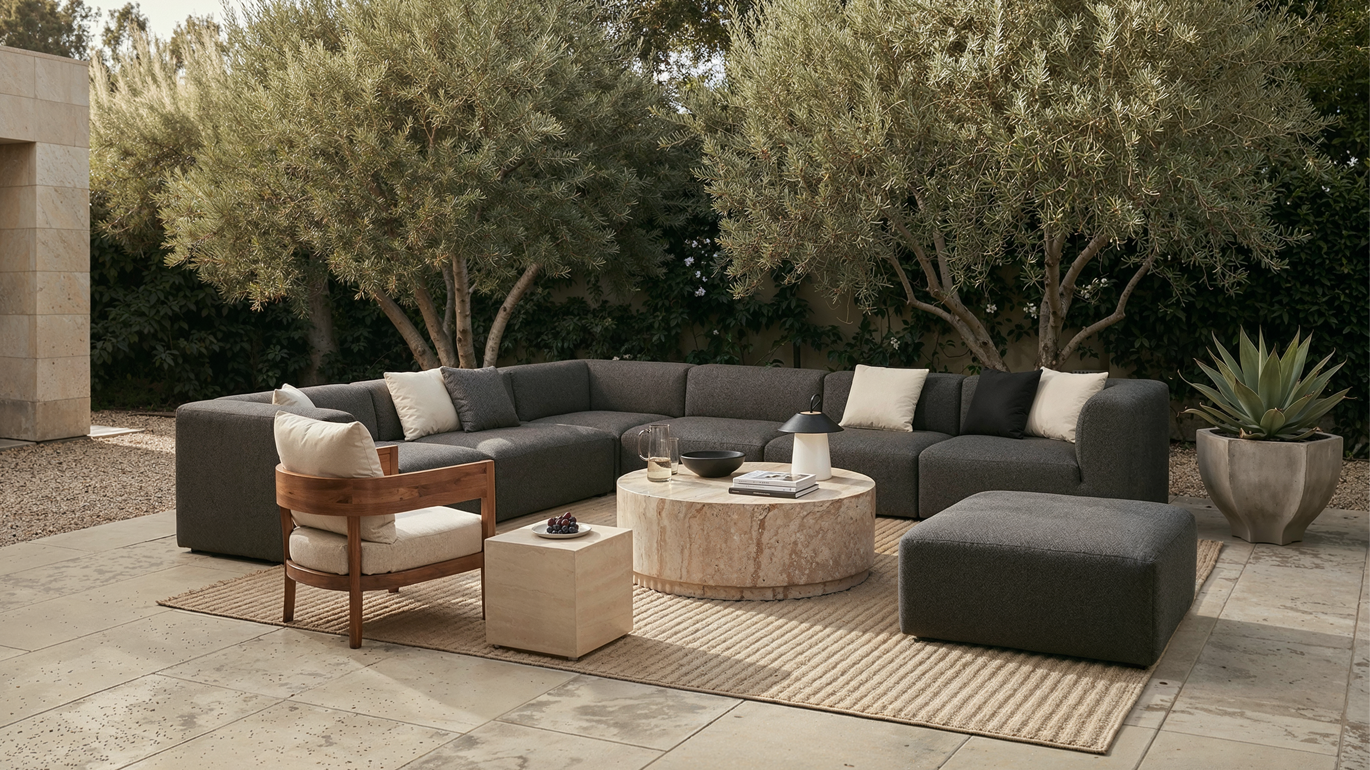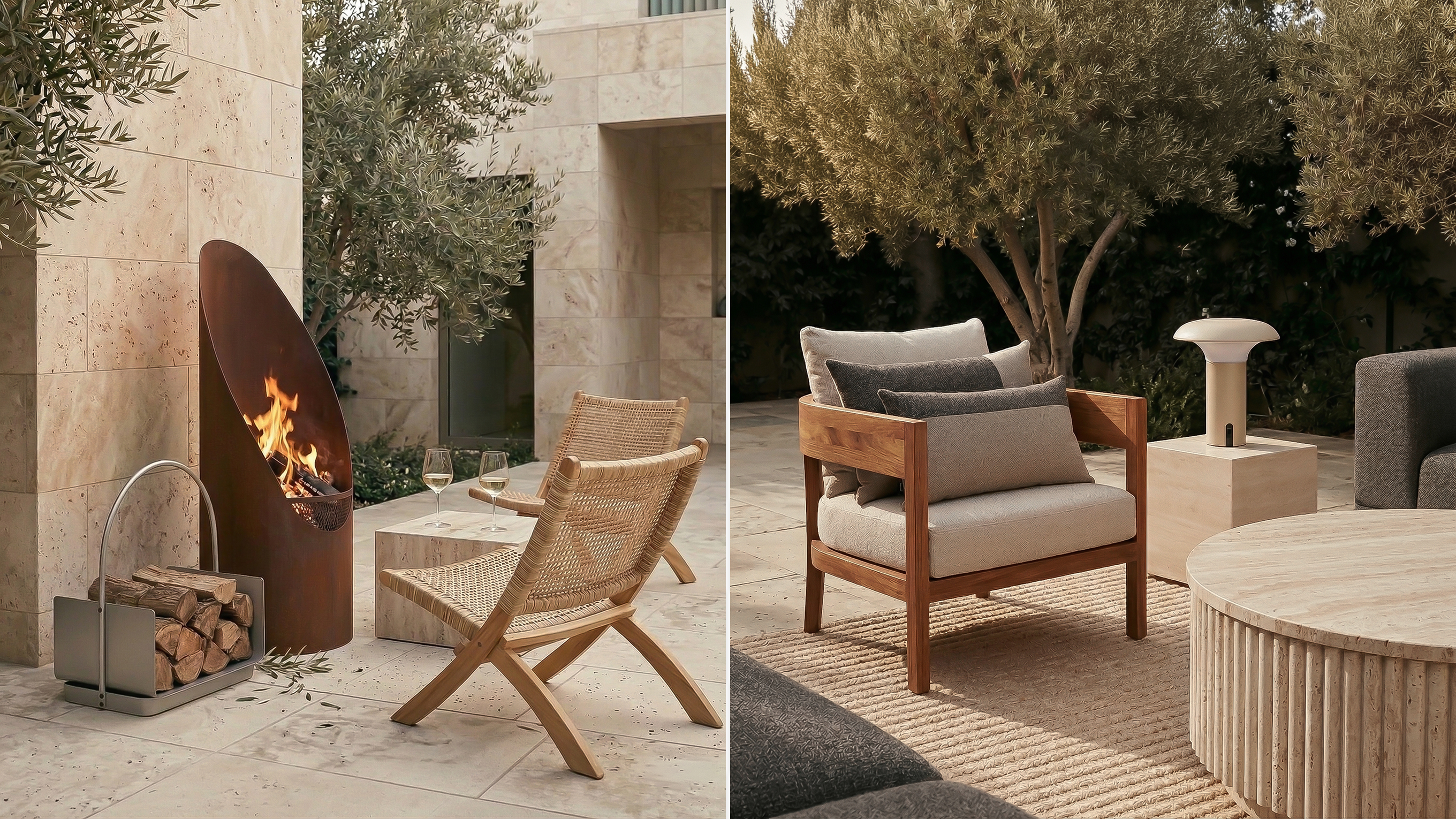 For real living-room vibes outdoors, it’s all about the details: cushions, rugs and more bring instant warmth, comfort and a sheltered feel. Extra highlights for an open-ended vibe include atmospheric lighting, fireplaces and fire pits.