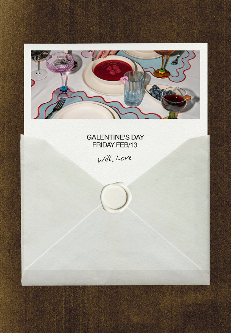 Le 13 février, vous fêtez les femmes de votre vie. La Galentine’s, c’est comme la Saint-Valentin : mais entre filles. Pour les meilleures amies, les sœurs, les mamans, les grand-mères : vous voyez l’idée. Nous avons tout pour une soirée Galentine’s réussie : un art de la table espiègle, des boissons assorties et des jeux marrants. L’ambiance : décontractée, avec une touche de glamour.