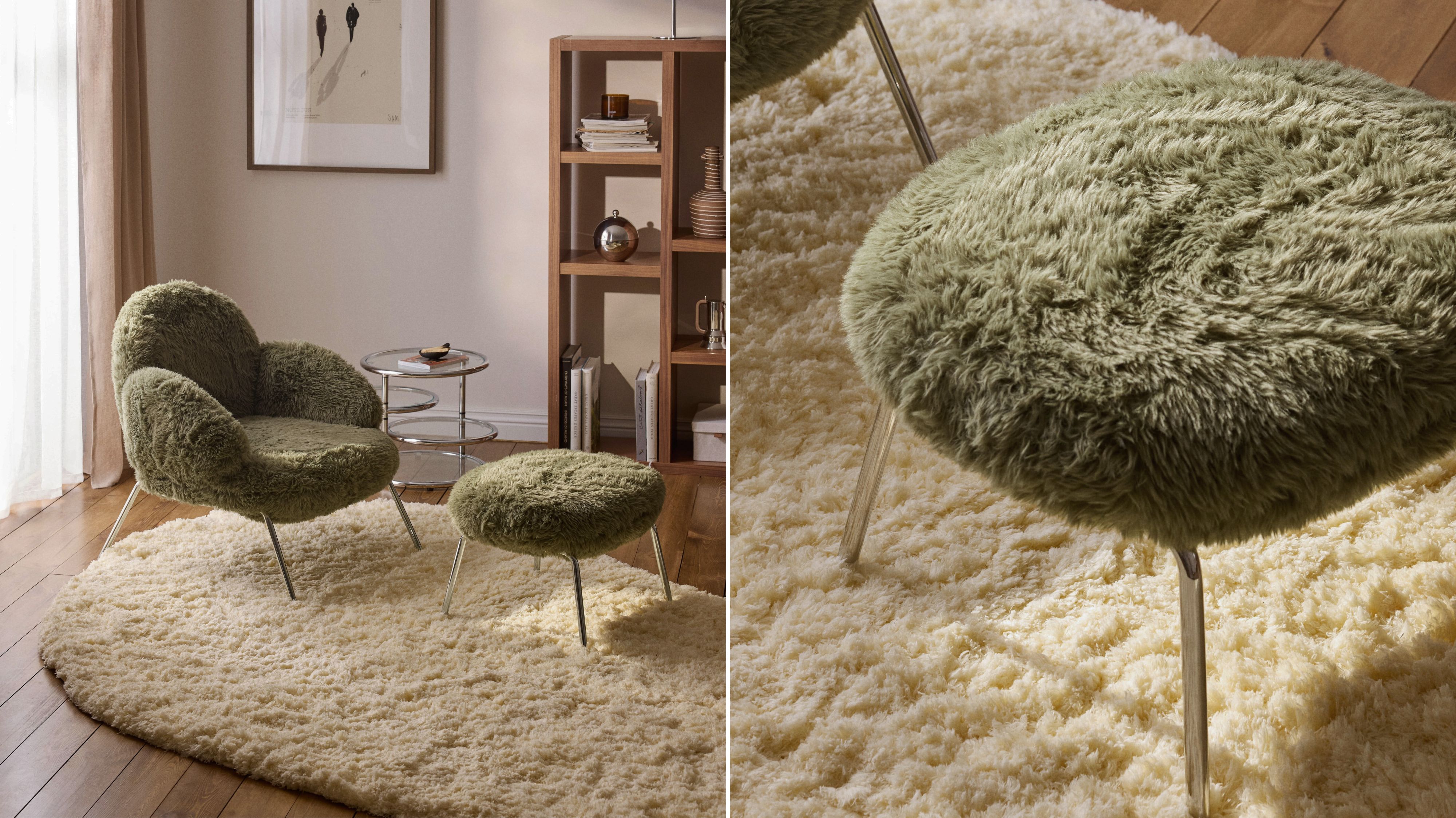 Touches minimalistes et pièces phares ! Quelques éléments bien placés suffisent : chandelier sculptural, grand vase ou meuble emblématique. Notre coup de cœur : le fauteuil LUAN avec assise en fausse fourrure et repose-pieds assorti pour un rendu chaleureux et élégant.