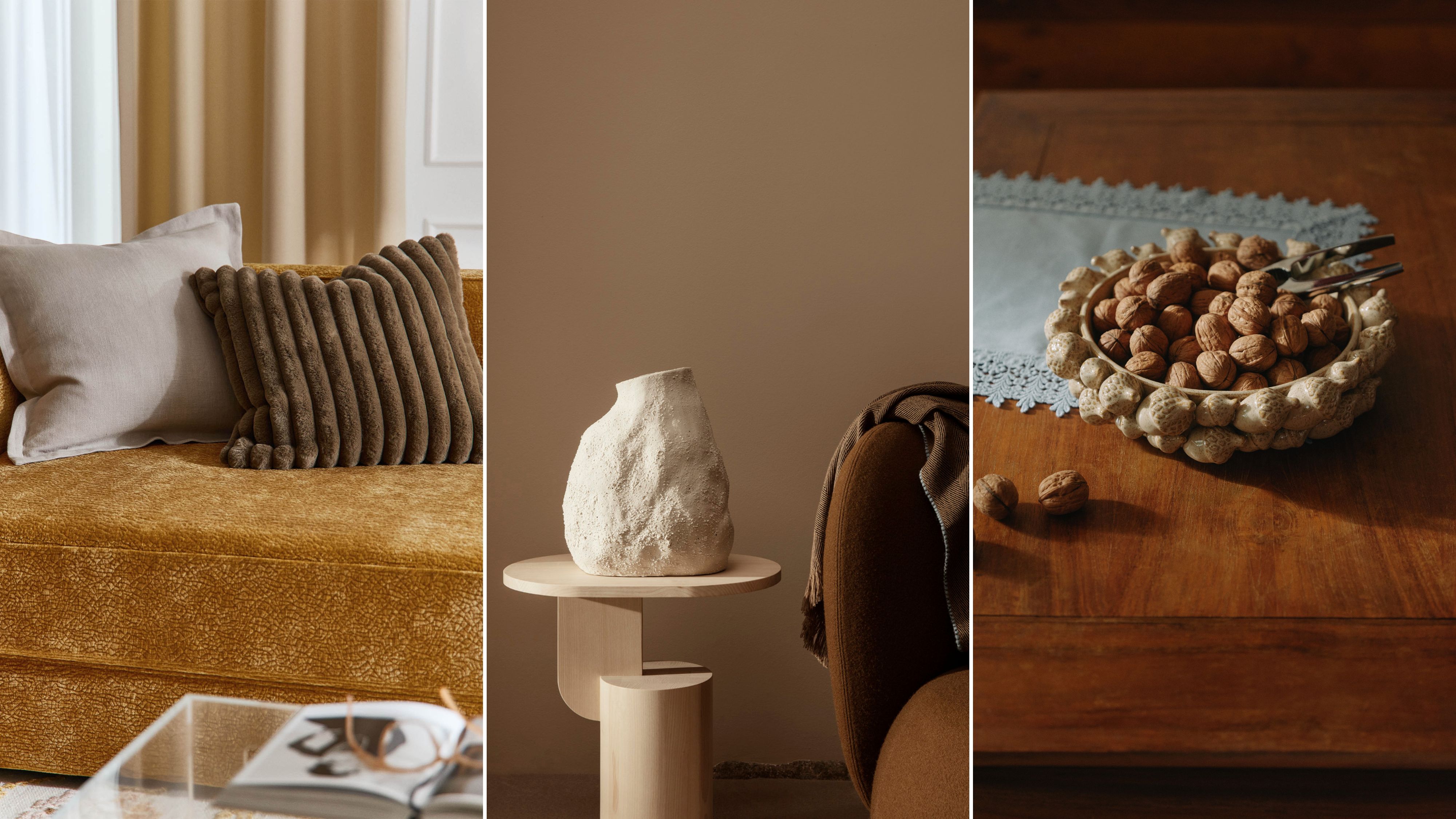 Couleurs neutres comme base ! Crème, taupe et bruns chauds réchauffent la pièce. Le ton sur ton offre un rendu épuré, élégant et hivernal.