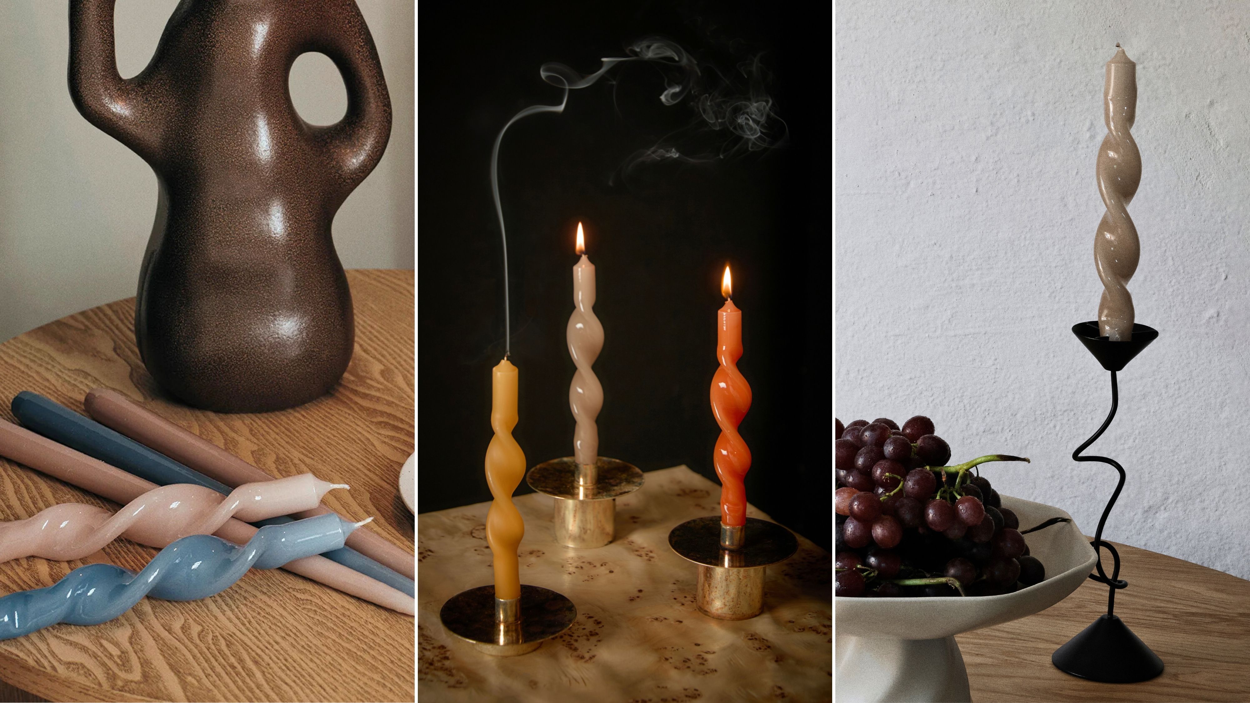 Twisted candles bring dynamism to any arrangement and look like little works of art – even when unlit. They create deliberate accents, break up classic lines and give both simple holders and sculptural objects an exciting update.